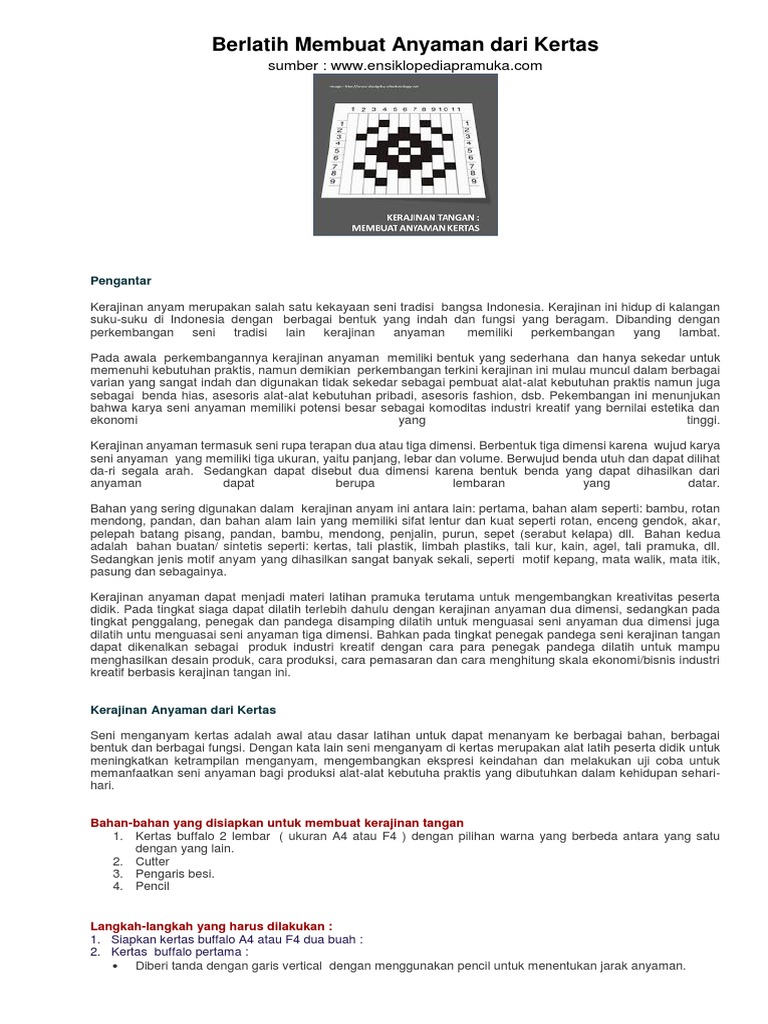 25 Kumpulan Gambar Anyaman Yang Cantik Dengan Motif Yang Menarik from i2.wp.com Apr 22, 2019 · kertas gambar ssebelim dilakukan proses menggambar lebih bagus harus dibasahi terlebih dahulu agar cat cepat menyebar. Mar 11, 2016 · bahan yang cocok untuk teknik anyaman yaitu…. Ada tiga warna dasar yang berkaitan dengan kepadatan kayunya, yaitu coklat gelap, cokelat medium,dan emas bercahaya. Oct 02, 2015 · bangunan masjid ini memiliki ukuran 9 x 9 meter. Cutter digunakan untuk pemotongan lurus, sedangkan gunting untuk pemotongan…. Proses gambar yang dibuat dengan pewarnaan manual atau dengan komputer dengan halus sehigga gambar pun terlihat seperti aslinya disebut gambar…. Didalam teknik menggambar aquarel dibutuhkan kemampuan yang memadai untuk bisa menghasilkan sebuah gambar, sebab dalam teknik ini menggunakan kuas yang sangat jauh berbeda dengan menggunakan pensil. Gunting cocok untuk pembentukan material….